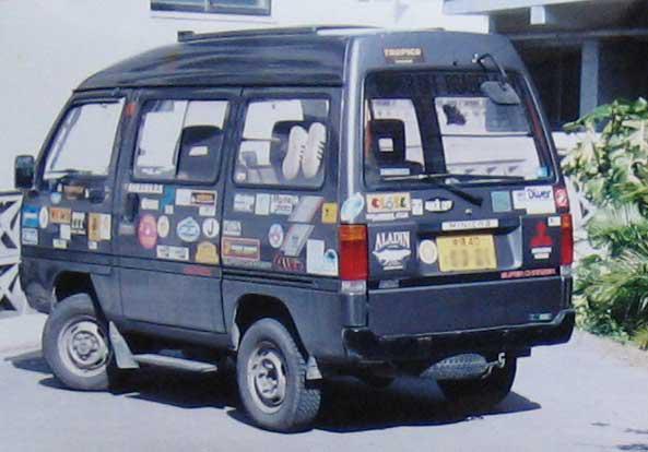 そんな折良いこともあった。ある日MINICABのところに行くとワイパーにビニール袋がはさんでありその中に大量のステッカーが入っていたのだ。誰かがくれたんだなぁ。いい人がいるものだ。